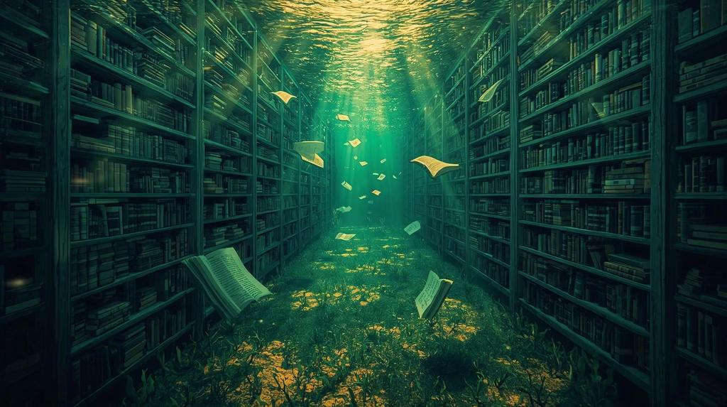 Ein pointillistisches Meisterwerk literarischer Tiefe. Tausende präzise Punkte formen eine versunkene Bibliothek, in der Bücher wie Quallen durch smaragdgrünes Licht tanzen. Jedes Farbpunkt ist ein Buchstabe, jede Lichtwelle eine Geschichte. Inspiriert von Louis Brailles Erfindung – ein Bild über das Fühlen von Worten und das Sehen mit dem Herzen. Für Räume, die Tiefgründigkeit und die Magie des Unsichtbaren suchen.