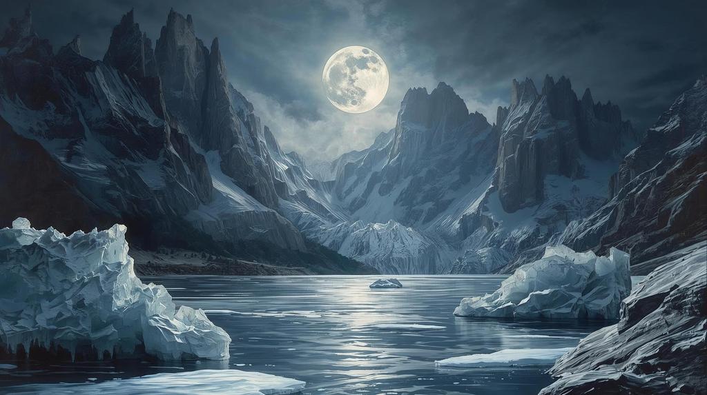 Dieses Meisterwerk fängt die erhabene Einsamkeit einer Winternacht im Februar 2026 ein. Inspiriert von der Dramatik des Barocks und der Technik des Chiaroscuro, zeigt dieses Werk den harten Kontrast zwischen dem kalten Mondlicht und den unergründlichen Schatten der Alpen. Jede Eiskristall-Formation wirkt wie von Meisterhand gemeißelt, während die Textur eines klassischen Ölgemäldes dem modernen Naturphänomen eine zeitlose Tiefe verleiht. Ein Statement-Piece für Räume, die Kraft und Ruhe zugleich ausstrahlen sollen.