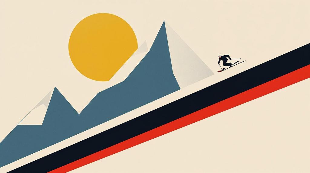 Dieses Werk ist eine Hommage an die Klarheit und Funktionalität des Bauhaus-Stils, übertragen auf die winterliche Bergwelt des Jahres 2026. Es reduziert die Hektik der Wettbewerbe auf ihre reine, ästhetische Essenz: Winkel, Linien und Kreise. Die Dynamik einer Abfahrt wird durch mutige Diagonalen spürbar, während die Ruhe der Gipfel in strengen Dreiecken verharrt. Ein zeitloses, grafisches Statement für Liebhaber von modernem Design und minimalistischer Architektur.
